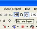 For å tegne hele basen, velger vi Utsnitt | Vis hele basen fra hovedmenyen. Vi kan også bruke tilsvarende knapp på verktøylinjen. Nå skal kartbasen tegnes i en målestokk som gjør at hele kartutsnittet passer innenfor programvinduet.